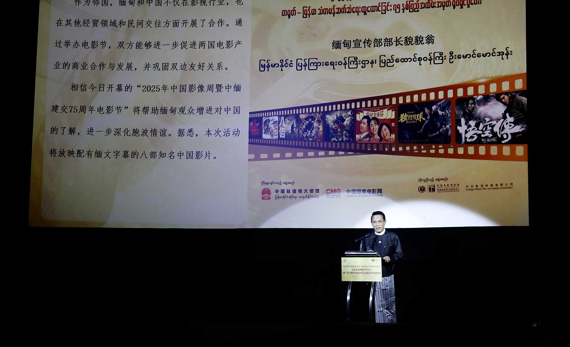 The 2025 Chinese Image Film Week and Film Festival, celebrating the 75th anniversary of China–Myanmar diplomatic relations, opened on November 16 at Nay Pyi Taw Cinema in Yangon. The four-day event is organized by the Chinese Embassy in Myanmar, China Media Group, and the China Film Administration, with support from the China Film Archive and Foreign Affairs Film and Media Corporation.